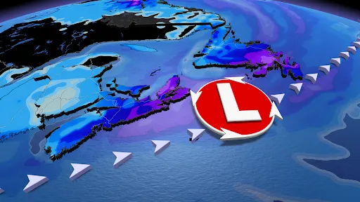 A more significant system is expected to impact the region on Wednesday and Thursday. This low-pressure system will track from Ontario and the northeastern United States, bringing heavier snowfall to Atlantic Canada.