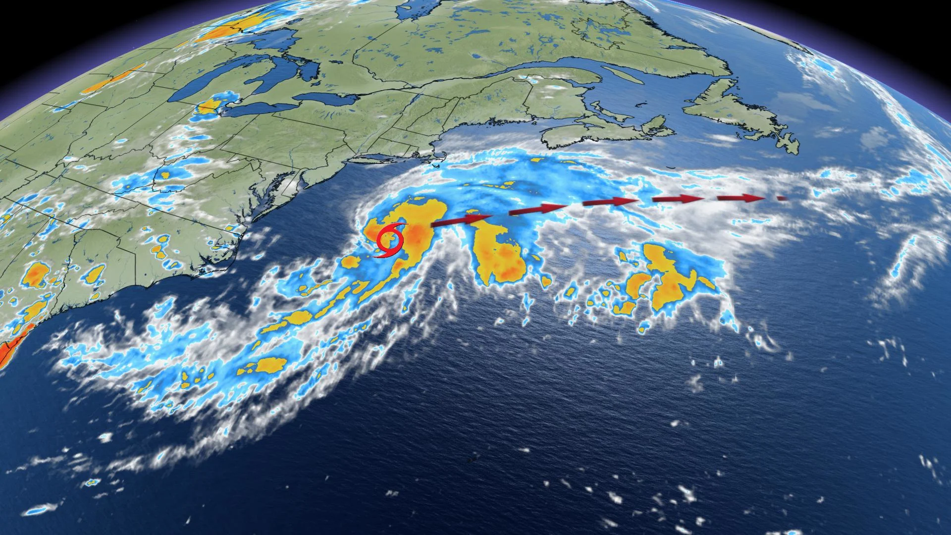 Swirling well offshore, about 300 km southeast of Atlantic City, New Jersey, the storm is forecast to move on a track that will take it on a gradual arc away from the U.S. East Coast, and well south of Nova Scotia.
